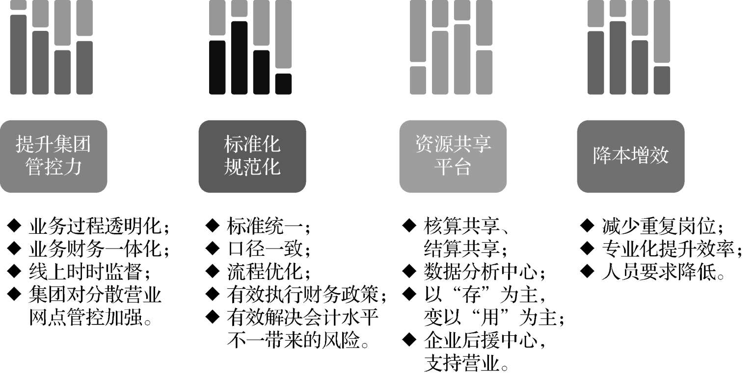 财务共享服务中心建成后,管控能力增强、信息标准统一、财务资源利用优化(见图1-4)。