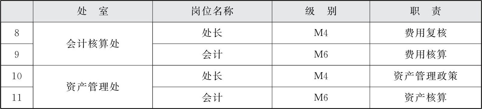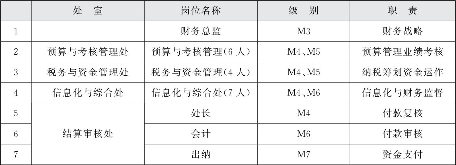 表1-3 鸿途集团财务部岗位职级、职责及人数统计表