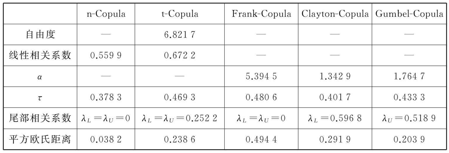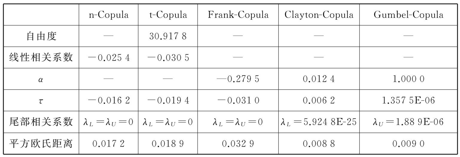 表2-5 铜和铝组合五种Copula函数的Kendall秩相关系数及与经验Copula函数的拟合度