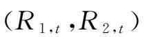 ),进一步依据模型设定部分阐述的模拟计算过程,得到五类Copula函数产生的5组10 000×2质物组合的收益率向量