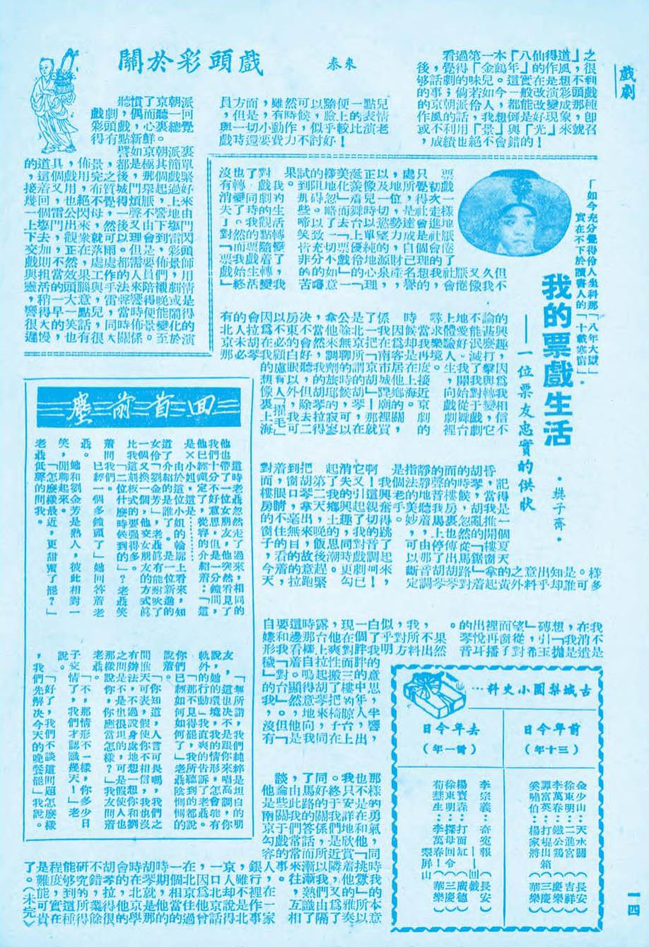 1938年第1卷第4期《半月戏剧》中蹦蹦戏名伶