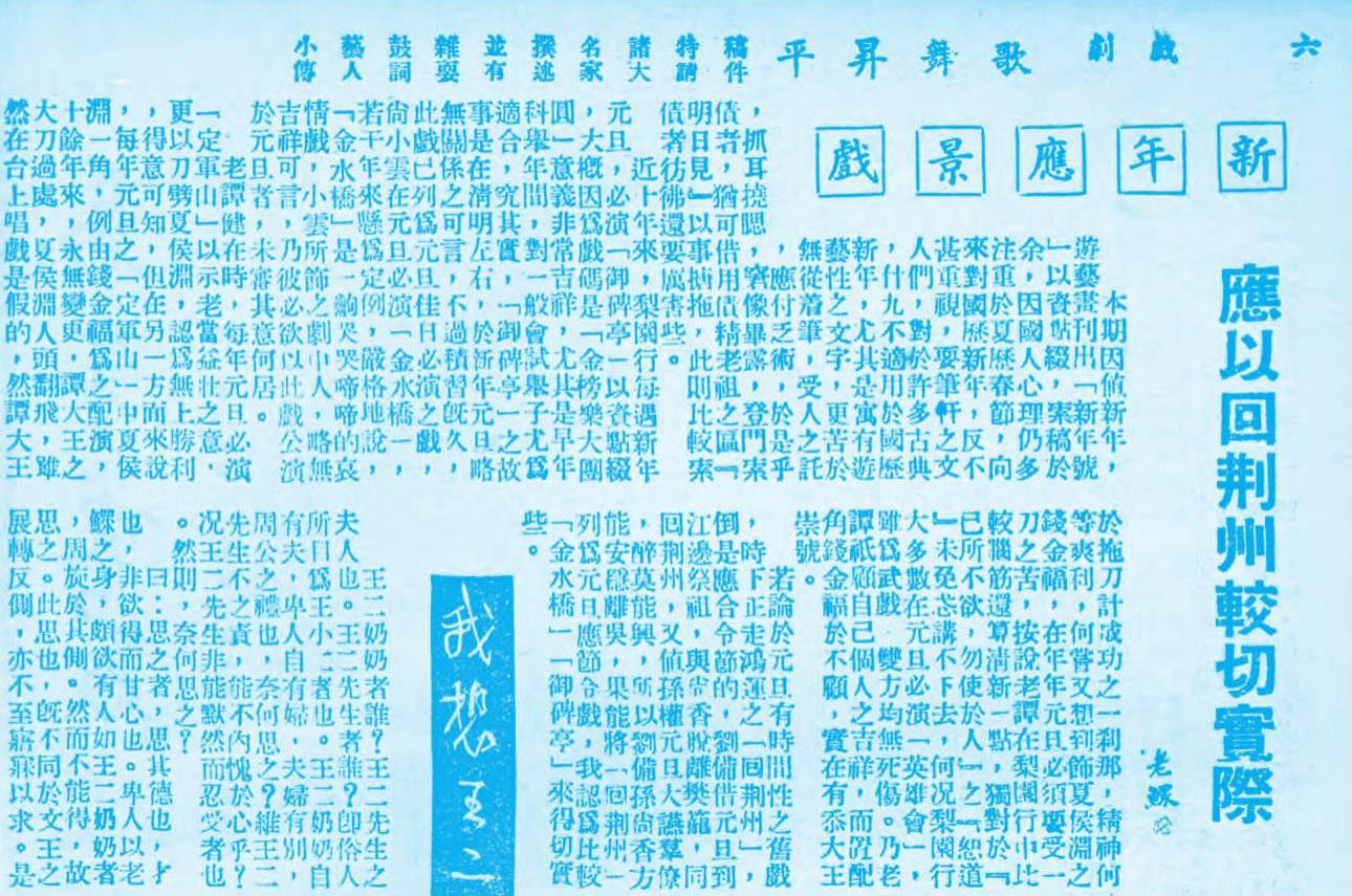 1943年第10期《三六九画报》中《关于彩头戏》一文