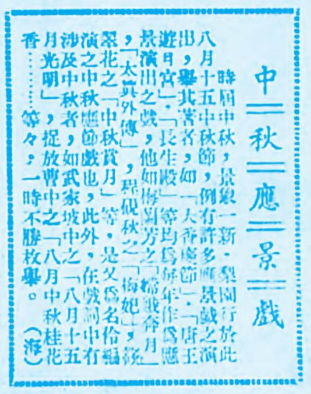 1943年第2卷第11期《商钟半月刊》介绍中秋节应景戏