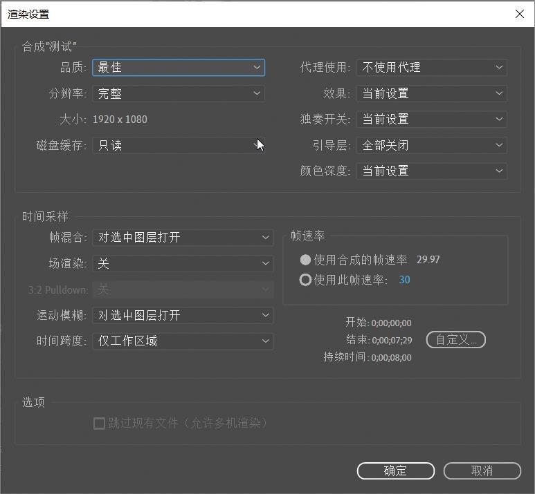 帧速率: 用于控制输出视频的帧速率;可以使用当前合成的帧速率,也可以单击数字切换到自己想要的帧速率。