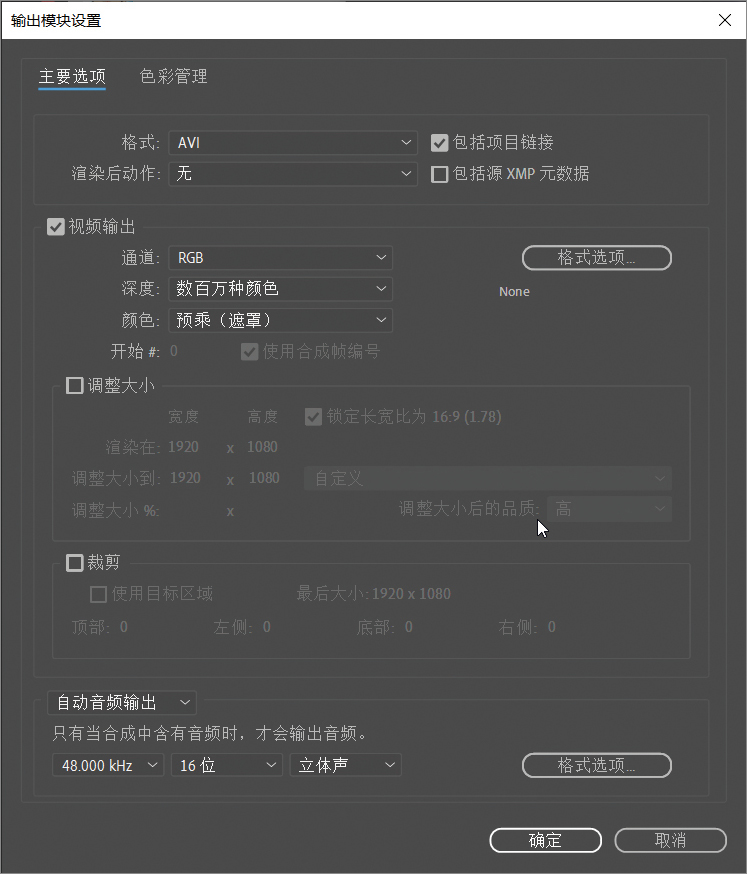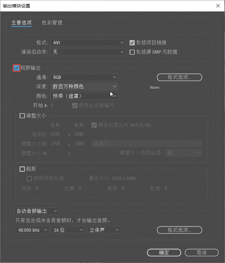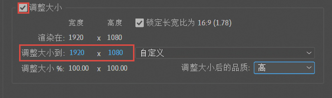 调整大小: 默认不勾选,勾选之后可以修改视频输出的大小,如图A-16所示。