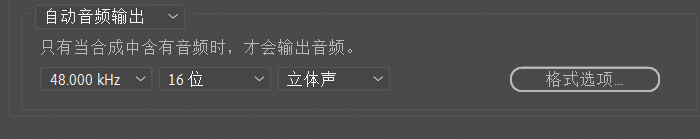 自动音频输出: 用来设置视频中的声音,默认选择“自动音频输出”,如图A-18所示,会根据视频中是否有音频来选择是否要输出音频。另外,也可以选择“打开音频输出”或者“关闭音频输出”。