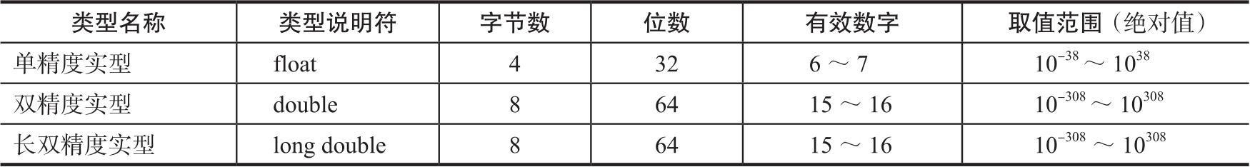 表2-2中列出了Visual C++系统中各种实型变量的数据长度、精度和取值范围。