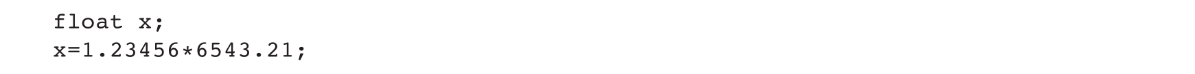 系统将1.23456和6543.21按双精度存储(占64位)和运算,得到一个双精度的乘积,然后取前7位赋给变量x,这样做可以保证计算结果更精确,但是降低了运算的速度。