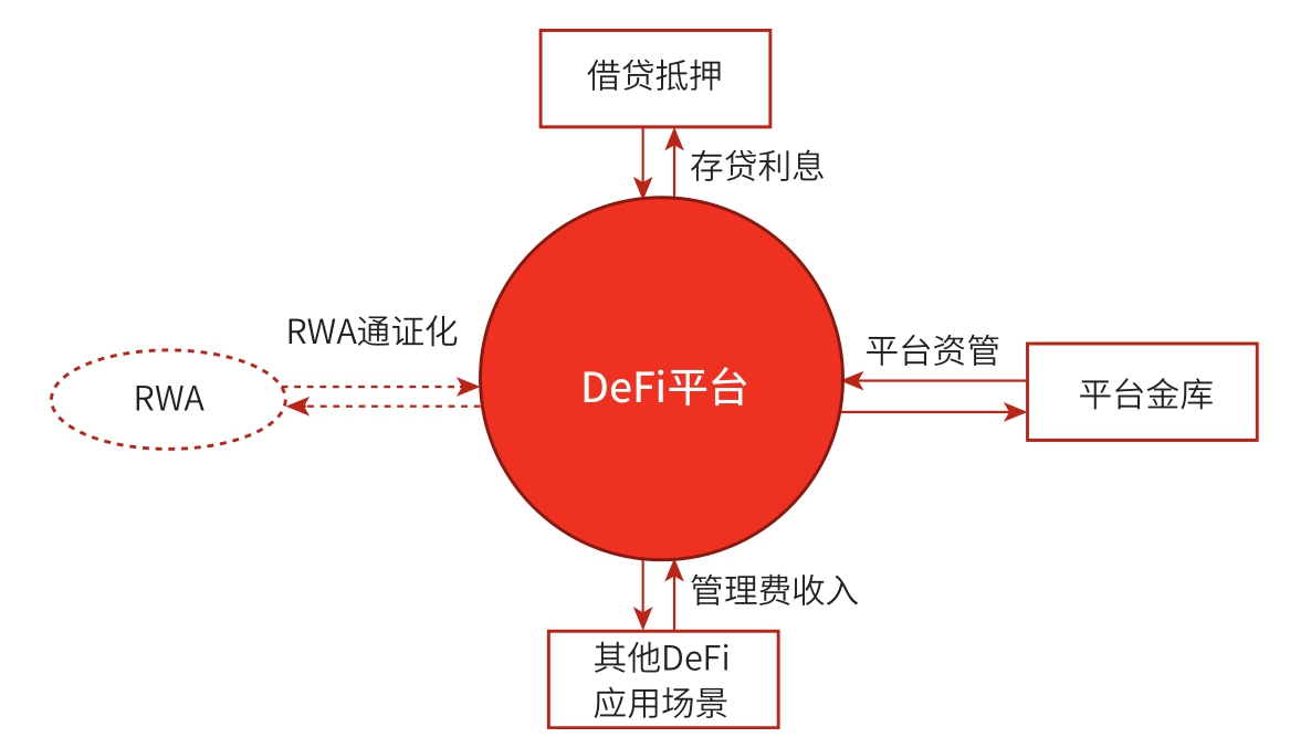 RWA通过通证化上链,即将其对应底层资产的权益映射到DeFi中,实现RWA的通证化。RWA与DeFi协议结合应用可连通中心化与去中心化系统,使RWA被“DeFi化”。