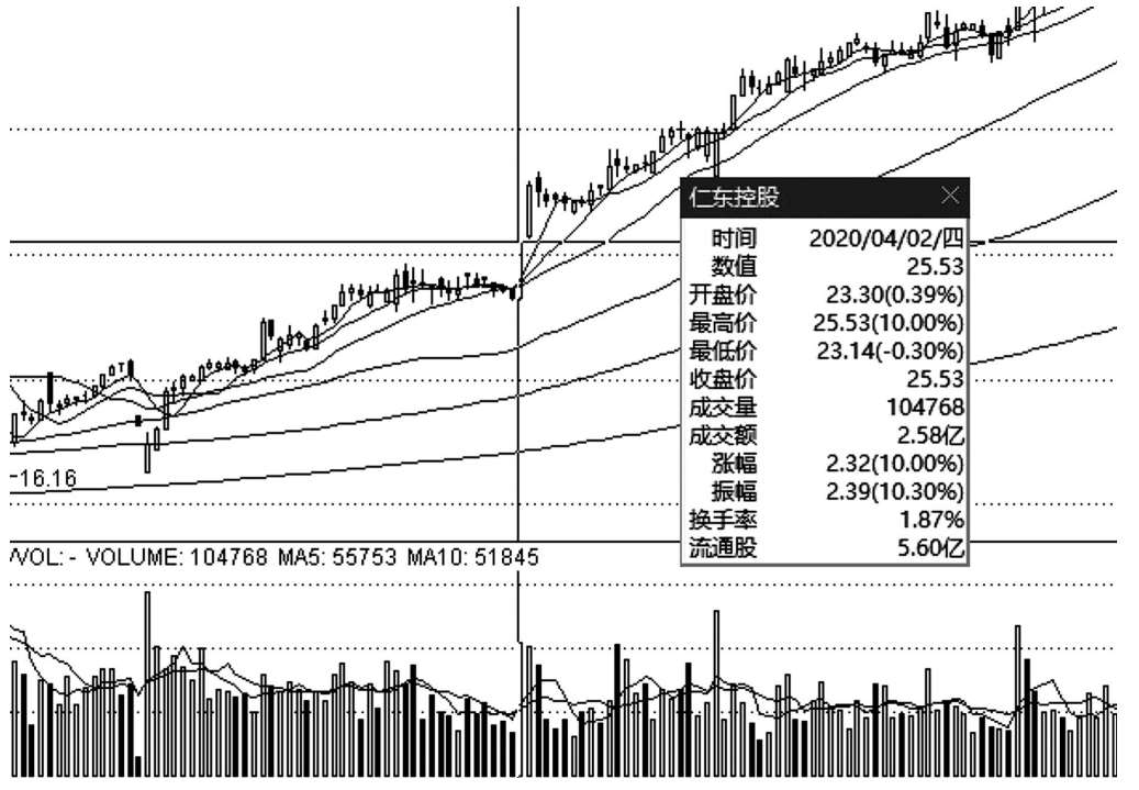 我们一起来看图1-3-4。在2020年4月2日这天,这只个股的成交金额是2.58亿元,而前一个交易日只有8000万元,成交金额突然放大了,大约是原来的3倍。但这种成交金额的放大只维持了三个交易日,这一点就非常不寻常。因为通常来讲,大家对一个投资标的的价格分歧是会有惯性的,而不规则的放量往往只能维持短短几个交易日,这就表达了价格分歧的不连贯。这是很不寻常的,庄股就会时常表现出这种不寻常。