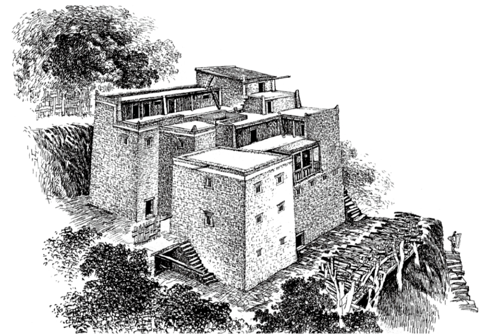 综上推测,羌族建筑恐怕是古冉駹人与西北羌人的共同创造,它分成了住宅、碉楼、住宅与碉楼共同体三大空间形态。那么,碉楼等建筑之由来应是怎样的呢?
