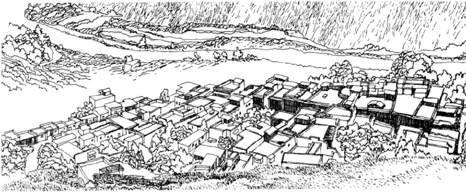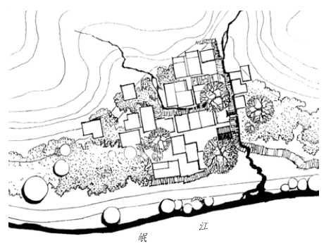 无论岷江两岸还是支流,经河水的冲积,都形成若干大大小小的平坝或缓坡,谓之第一台地。那里土地肥沃,交通方便,水源充足,是良好的村寨选址。但沿河岸的地区又是年降雨量仅500毫米的干旱河谷地带,因此,选址又多在两流相交的地方。所谓水源充足,指流溪沟的水源可自流灌溉于田土,或饮用,或利用落差置磨房,或引水寨中成渠以荡涤污垢,等等。