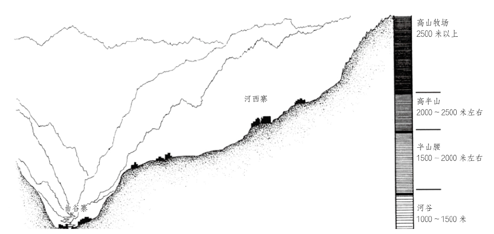 处于河谷的曲谷寨海拔约1500米;而附近的高半山河西寨高2500米左右;在岷江羌区下段的羌锋寨海拔仅1000米左右;附近的和坪寨属高半山地区,海拔仅1600米左右,和北部河谷海拔相差无几。因此,所谓河谷、半山、高半山三类地势的界定,多以某一特定地形的相对高度而言,或者是一种高差的民间比较。