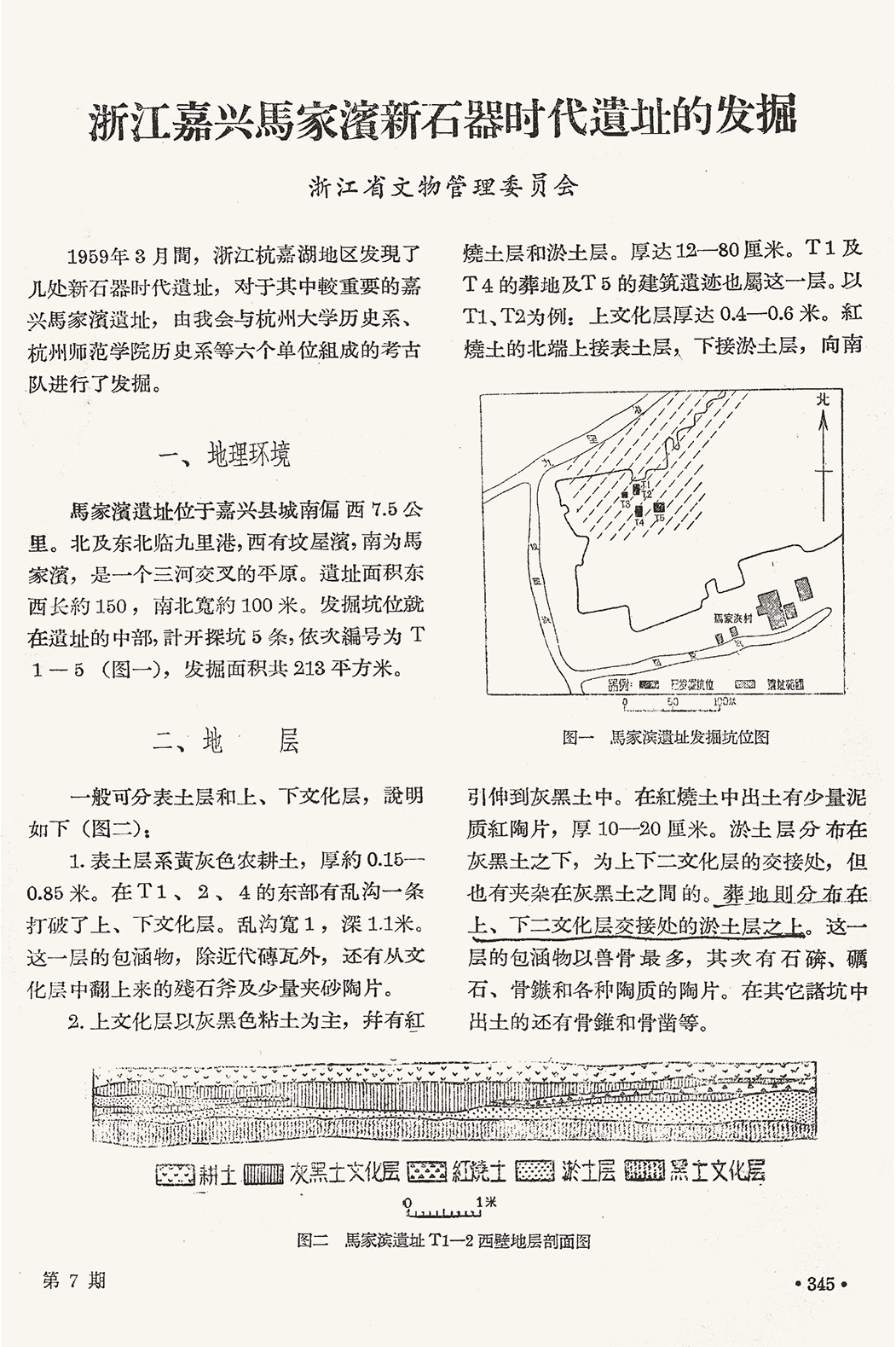 图1-4 《浙江嘉兴马家滨(浜)新石器时代遗址的发掘》,《考古》1961年第7期