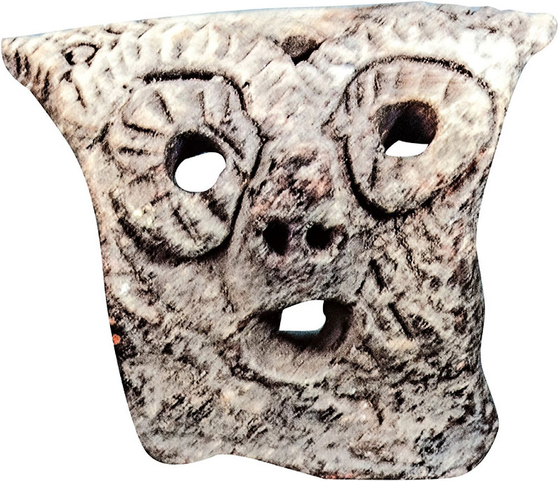 图1-15 嘉兴马家浜新石器时代遗址出土的人面形器。嘉兴博物馆提供