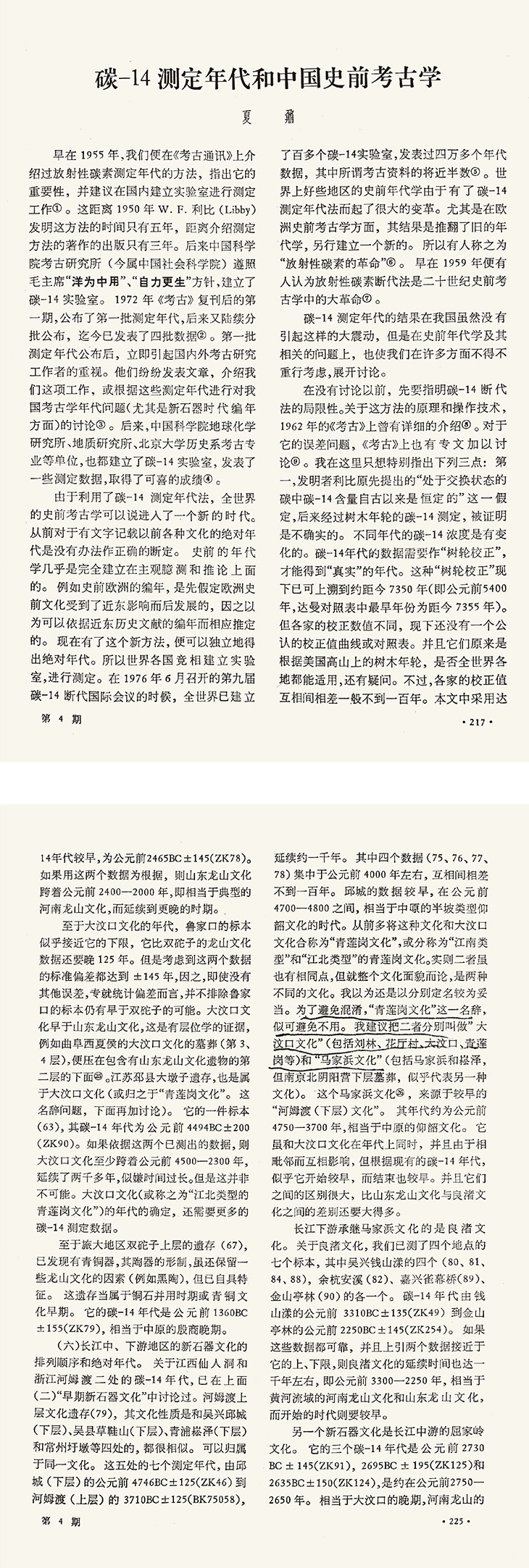 夏鼐:《碳—14测定年代和中国史前考古学》,《考古》1977年第4期。