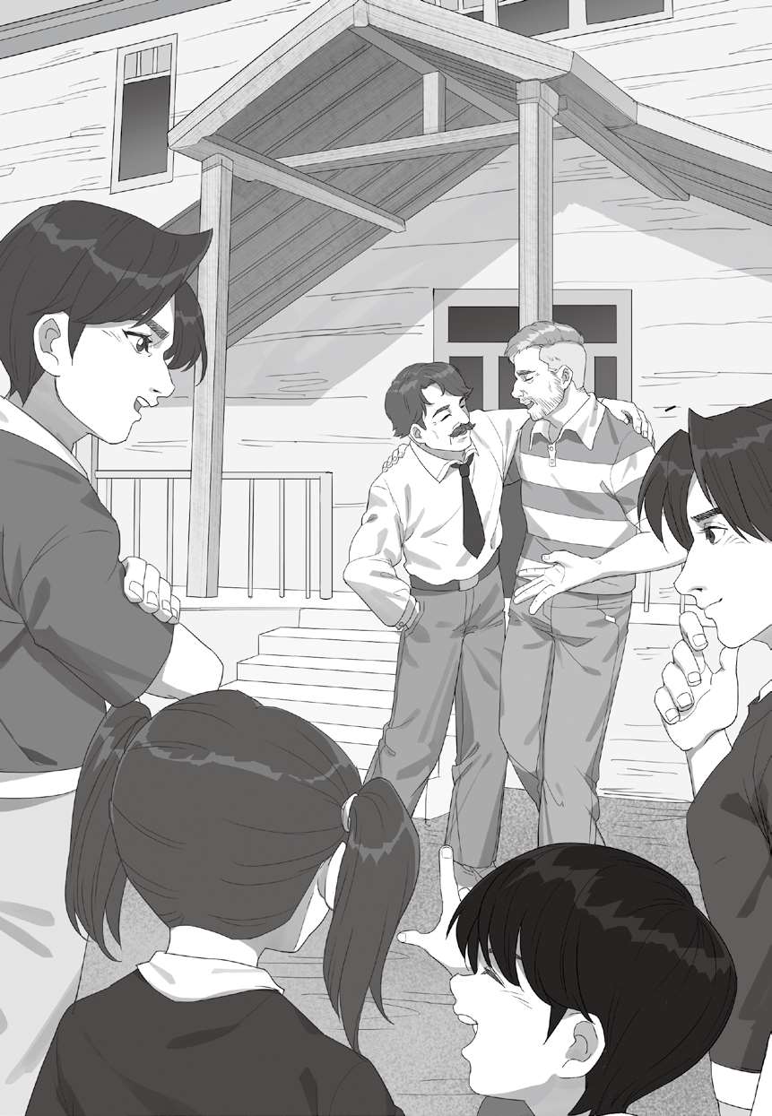 爷爷让到一旁。“来见见我的四个孙子孙女吧。”他说着,语气中流露出满满的自豪感。他指了指个头最高那个,“这是亨利,孩子中年龄最大的,今年十四岁。杰西十二岁。维奥莱特十岁。本尼六岁。”