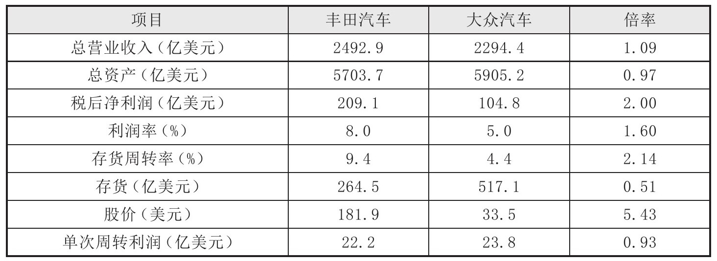 这时,多数人认为丰田的效率比大众高太多,其成本更低,管理方式也更先进。如果得出这样的答案,那就错了。