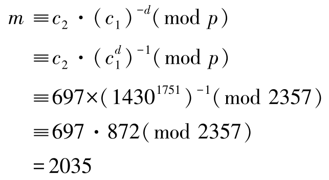 在解密阶段,Bob收到密文( c 1 , c 2 )后,计算