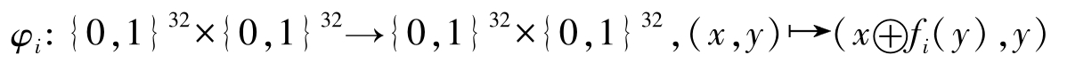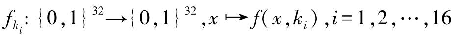 对于 i =1,2,…,16中的每一轮迭代,对左半部32比特明文 x 和右半部32比特明文 y 的加密密文 f i ( y )进行异或,可得