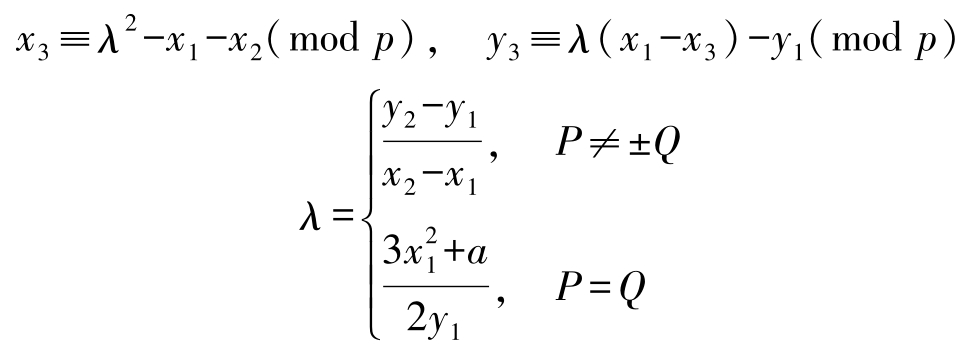 1985年,Koblitz和Miller分别提出利用椭圆曲线来开发公钥密码体制。椭圆曲线密码(Elliptic Curve Cryptography,ECC)的安全性基于椭圆曲线离散对数求解的困难性。目前普遍认为,椭圆曲线离散对数问题要比大整数因子分解和有限域上的离散对数问题难解得多。
