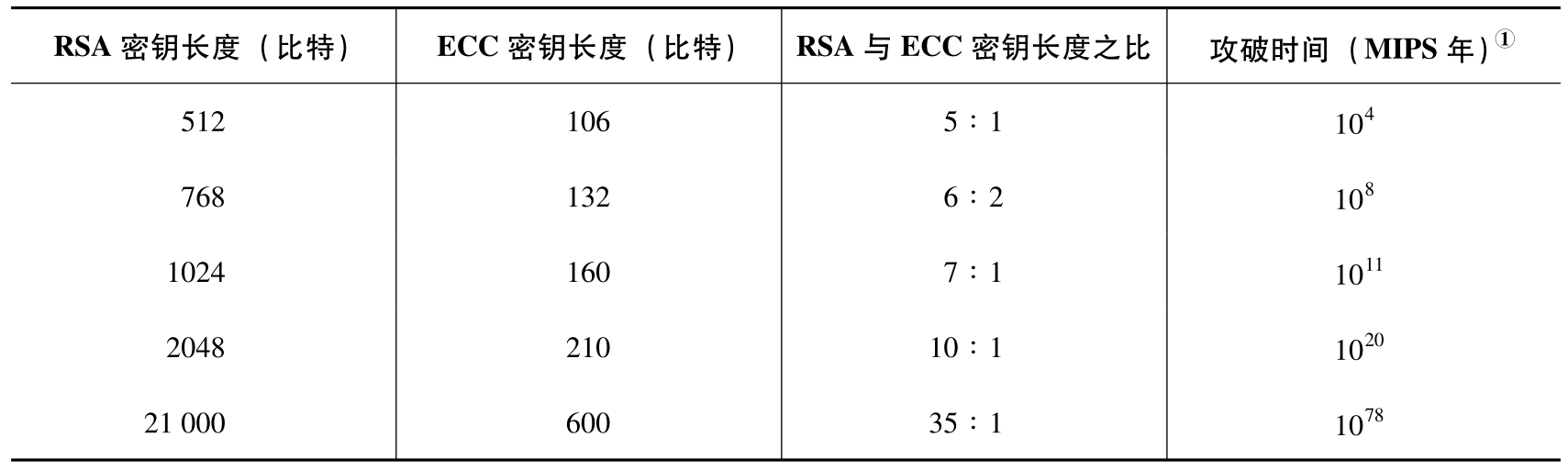 表3-4 RSA和ECC的性能比较