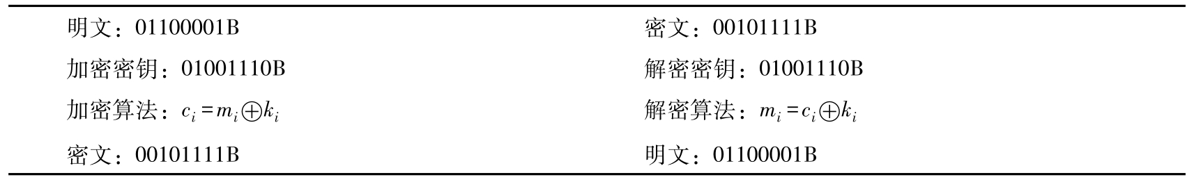 是消息比特和密钥比特的简单异或运算。为了加密消息, m = m 1 m 2 m 3 …需要一个密钥流 k = k 1 k 2 k 3 …, k i ∈{0,1}。