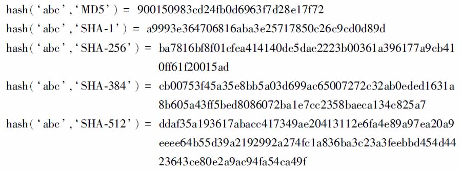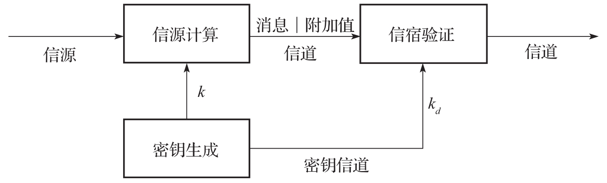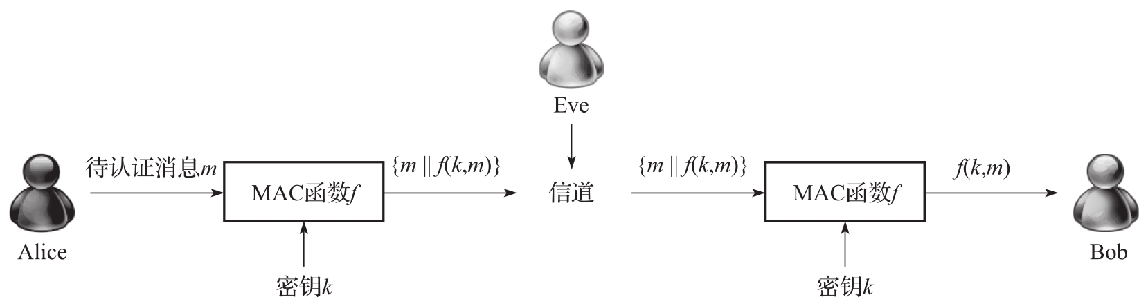 为了认证消息的完整性,需要对消息生成某种形式上的鉴别符,通过对鉴别符的分析,可以得知原始消息是否完整。在密码学中,消息加密、单向散列函数和消息认证码(Message Authentication Code,MAC)都是消息认证的重要手段。消息加密是将需要认证的消息加密,以加密的结果作为鉴别符。单向散列函数是将需要认证的消息通过一个公共函数映射为定长的消息摘要,以消息摘要作为鉴别符。消息认证码是将需要认证的消息通过一个公共函数的作用,以产生的结果和密钥作为鉴别符。