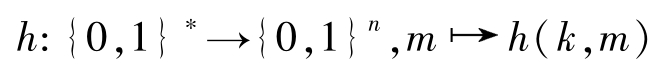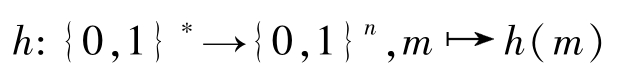 上式表明,单向散列函数 h 将任意长度的比特串{0,1} * 映射成长度为 n 的比特串{0,1} n 。单向散列函数具有错误检测的能力,即改变输入数据的任何一位或者多位,都会导致消息摘要的改变。根据消息 m 和消息摘要 h ( m )的对应关系,接收者可以判断消息在传输过程中是否被篡改过。