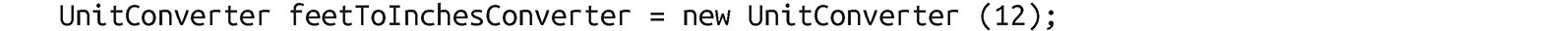 C#的优点之一是其中的预定义类型和自定义类型非常相近。预定义 int 类型是整数的蓝图。它保存了32位的数据,提供像 ToString 这种函数成员来使用这些数据。类似地,我们自定义的 UnitConverter 类型也是单位转换的蓝图。它保存比率数据,还提供了函数成员来使用这些数据。