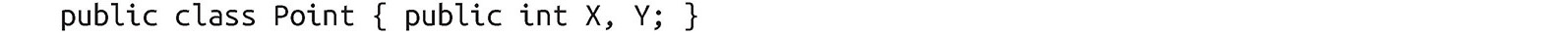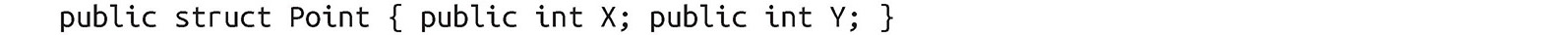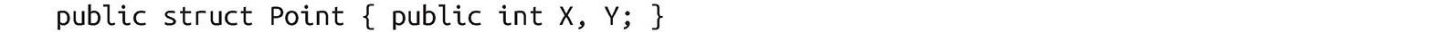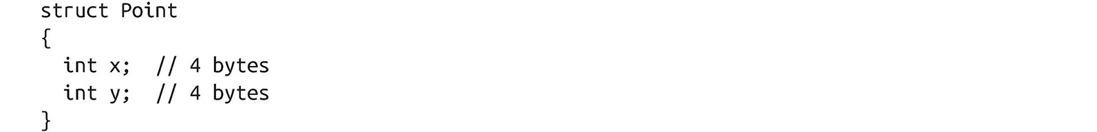 值类型实例占用的内存大小就是存储其中的字段所需的内存。例如, Point 需要占用8字节的内存: