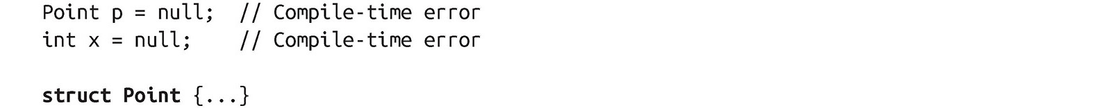 C#中也有一种可令值类型为null的结构,称为可空值类型(Nullable Value Type),请参见4.7节。