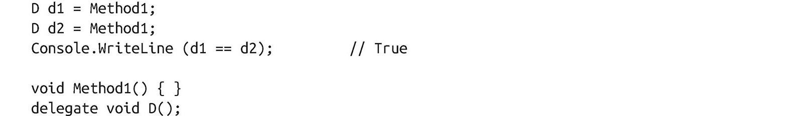 如果委托实例指向相同的目标方法,则认为它们是相等的: