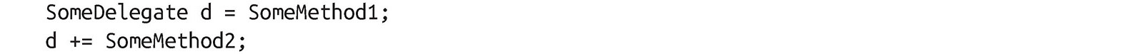 现在调用 d 不仅会调用 SomeMethod1 而且会调用 SomeMethod2 。委托会按照添加的顺序依次触发。