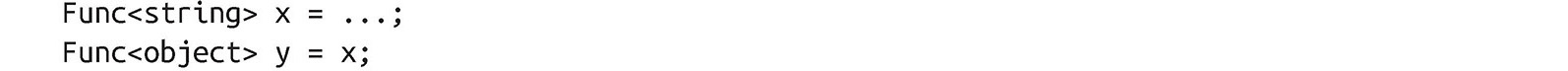 在第3章中,我们介绍了泛型接口是如何支持协变和逆变参数类型的。而委托也具有相同的功能。