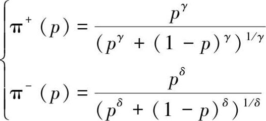 其中,π + ( p )为收益情景下的权重,π - ( p )为损失状态下的权重, γ =0.61, δ =0.69。