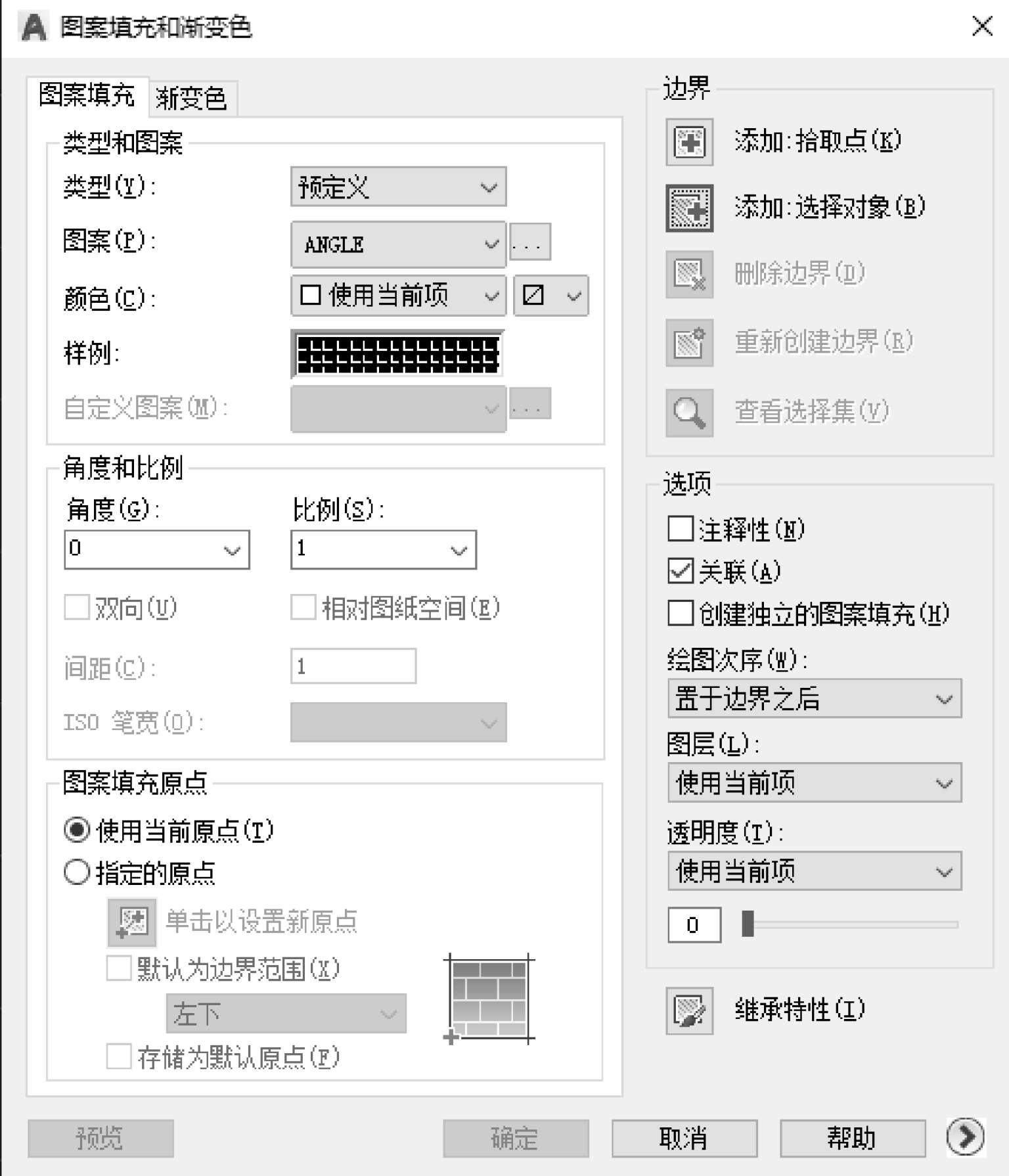 使用“继承特性”创建图案填充时,该选项用于控制图案填充原点的位置。