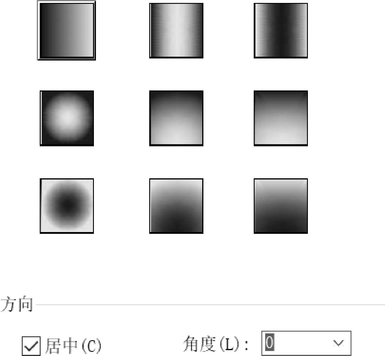 在该下拉列表框中选择角度,此角度为渐变色倾斜的角度,如图2.11所示。