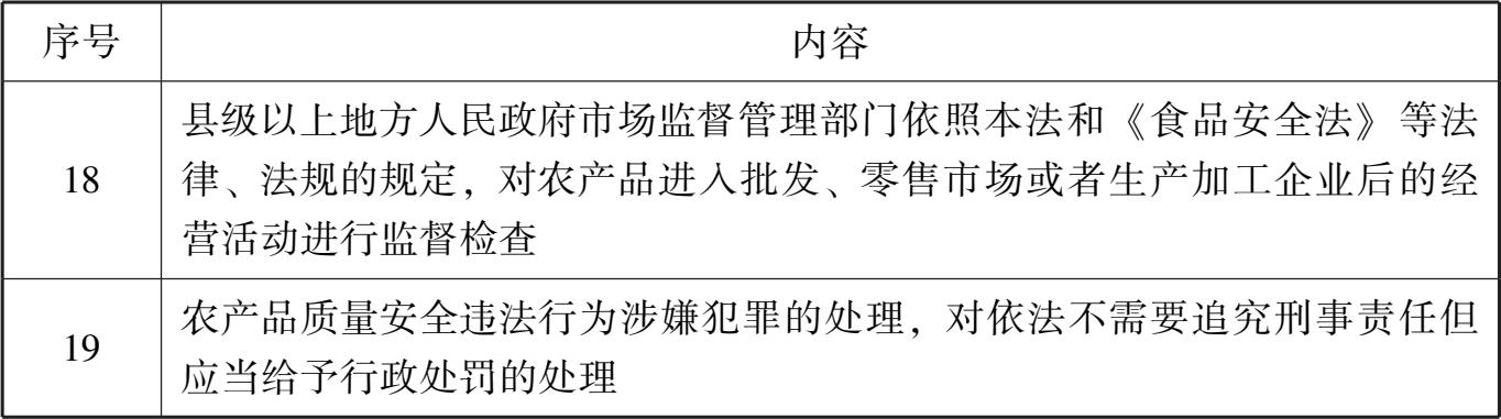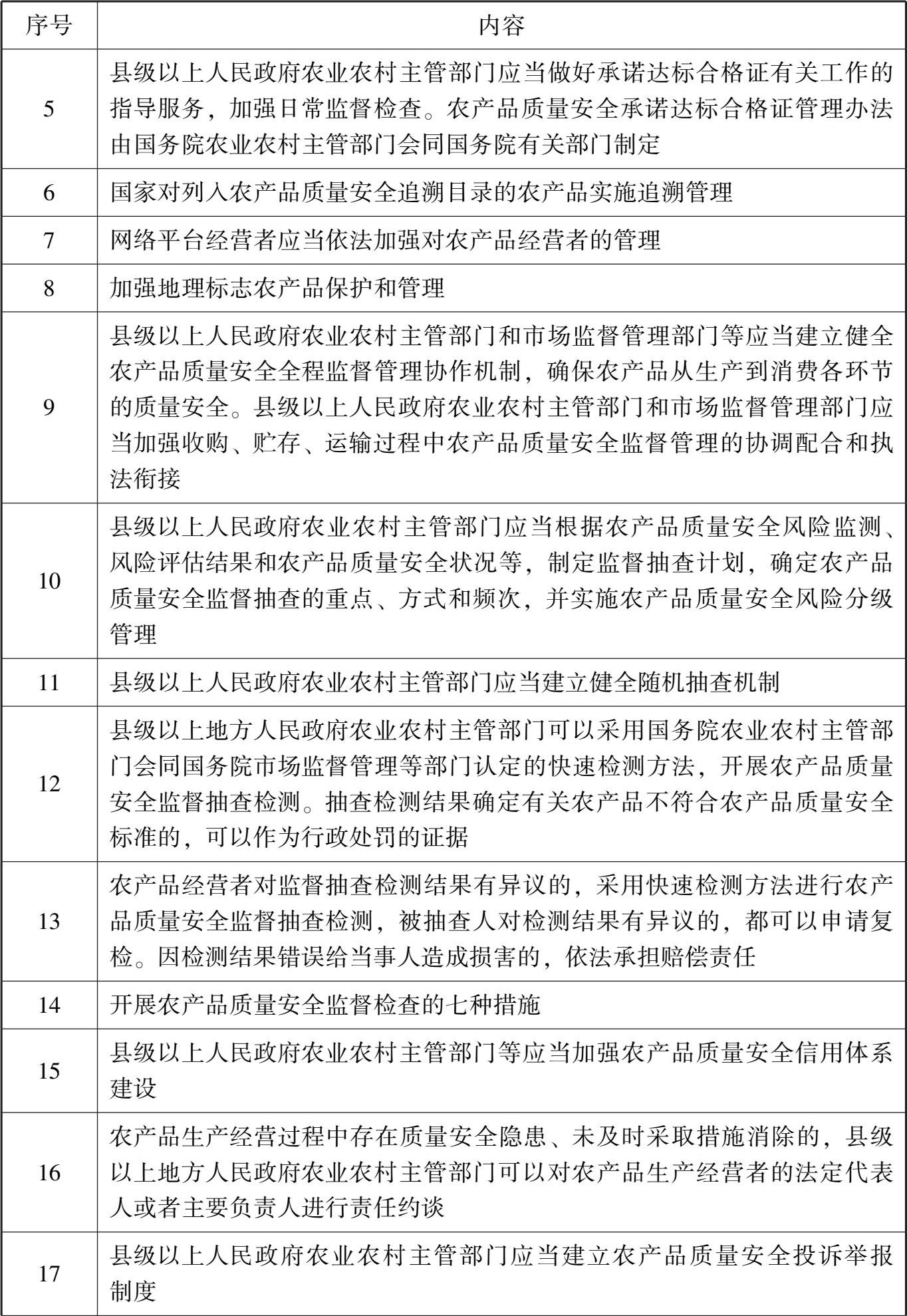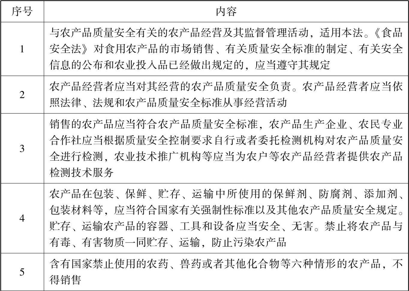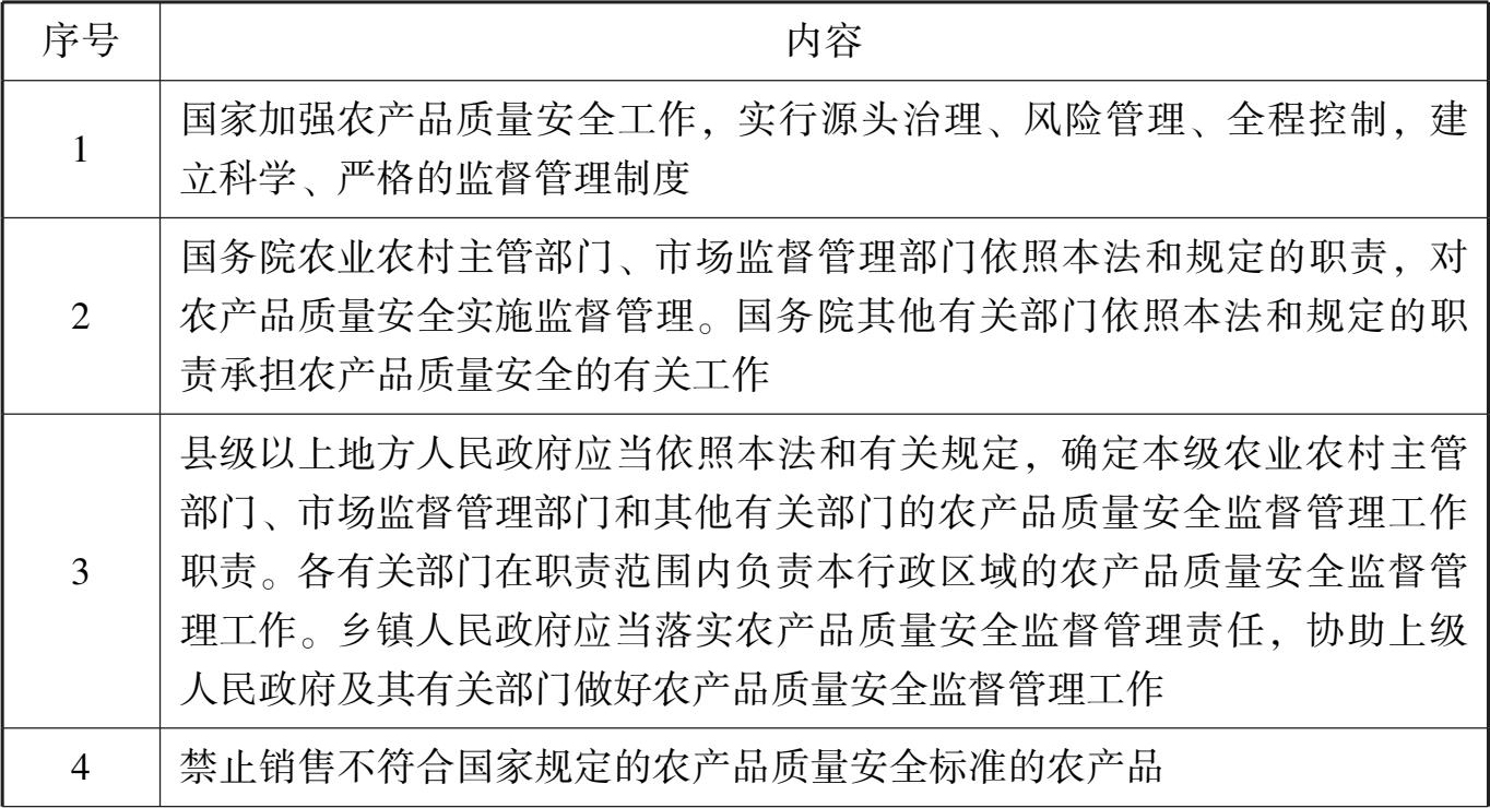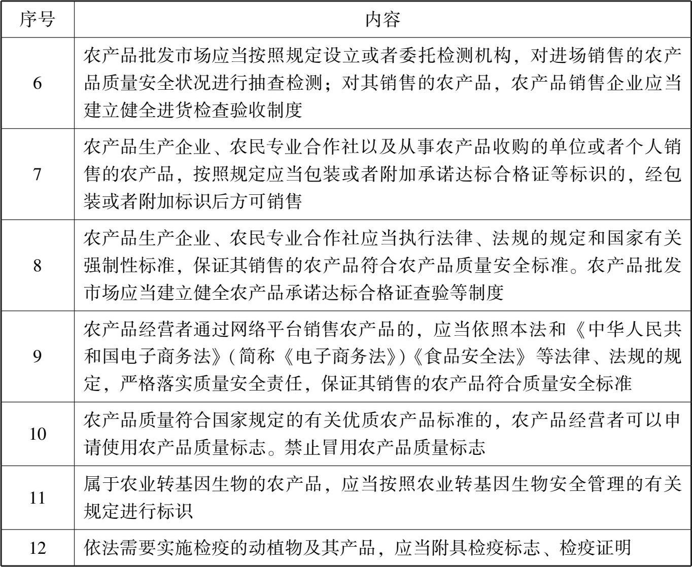 表2-11《农产品质量安全法》有关流通领域监督管理的规定
