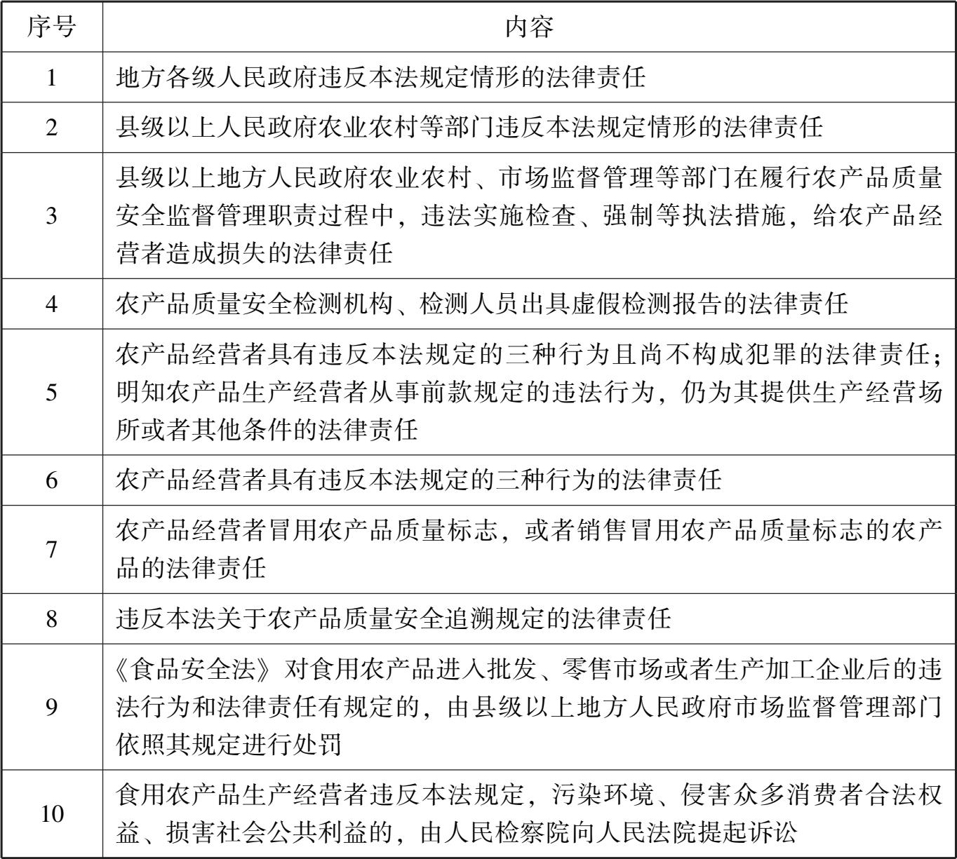 表2-12《农产品质量安全法》有关流通领域法律责任的规定