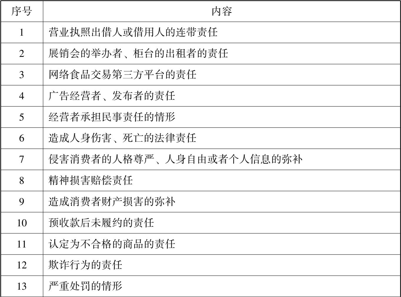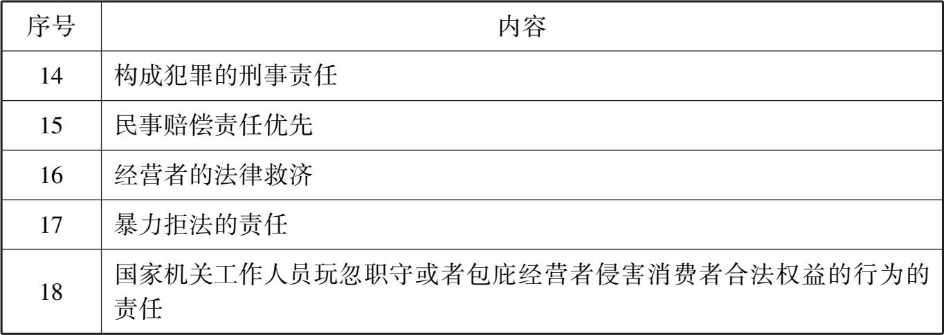 表2-15《消费者权益保护法》有关流通领域法律责任的规定