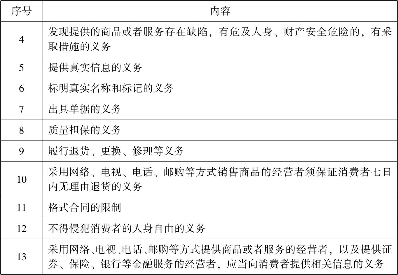 表2-14《消费者权益保护法》有关流通领域经营者的义务的规定
