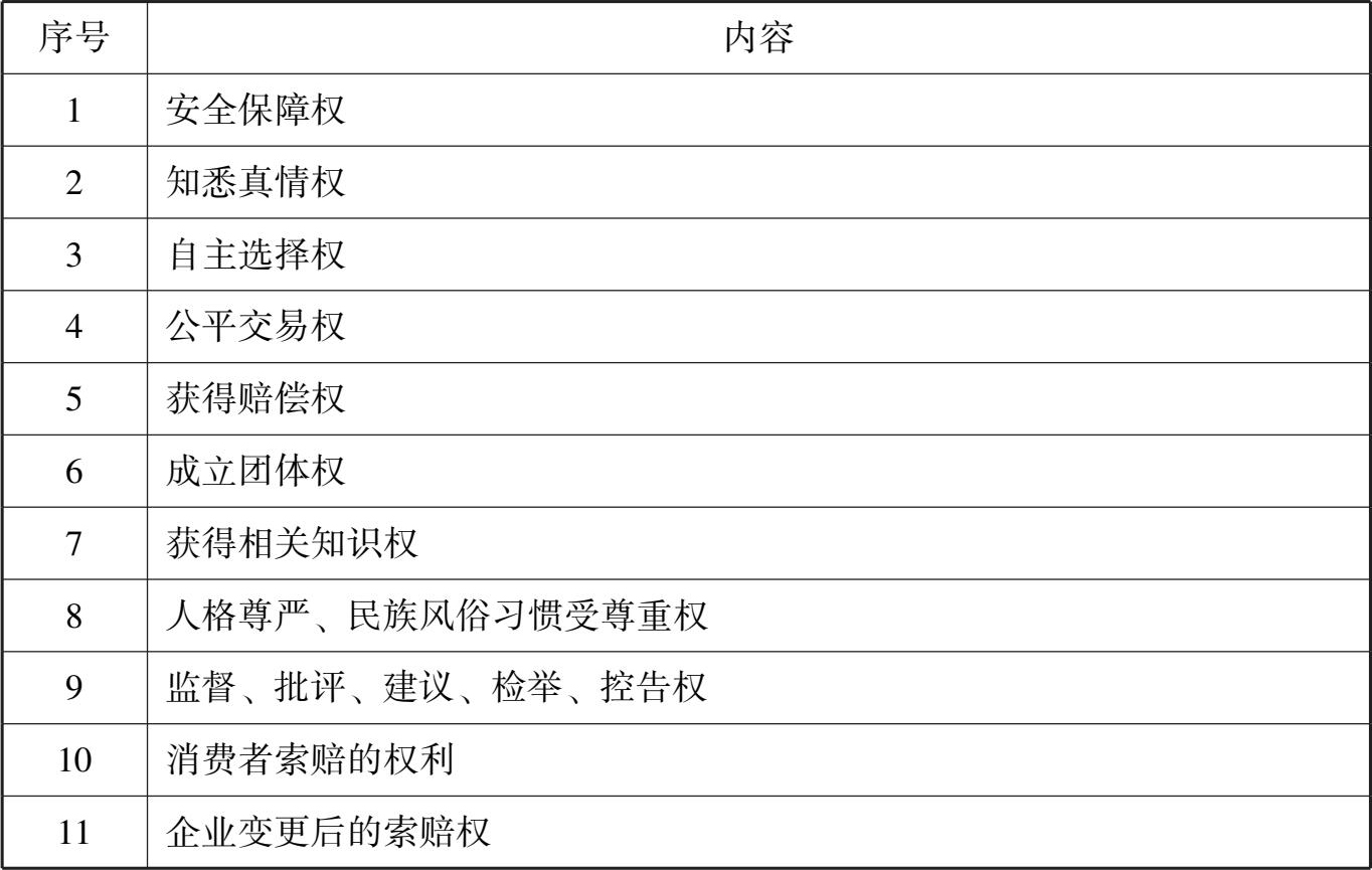表2-13《消费者权益保护法》有关流通领域消费者的权利的规定