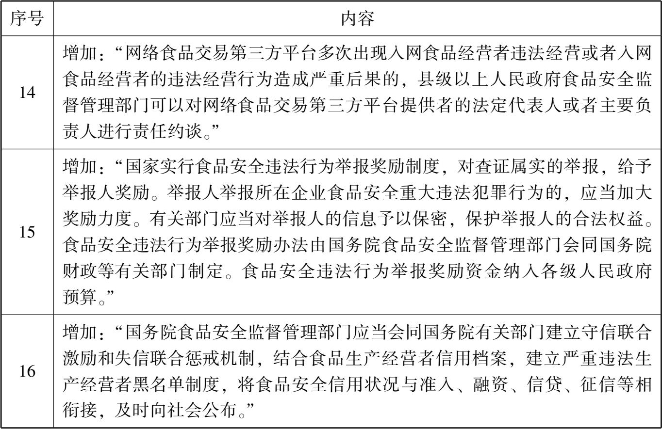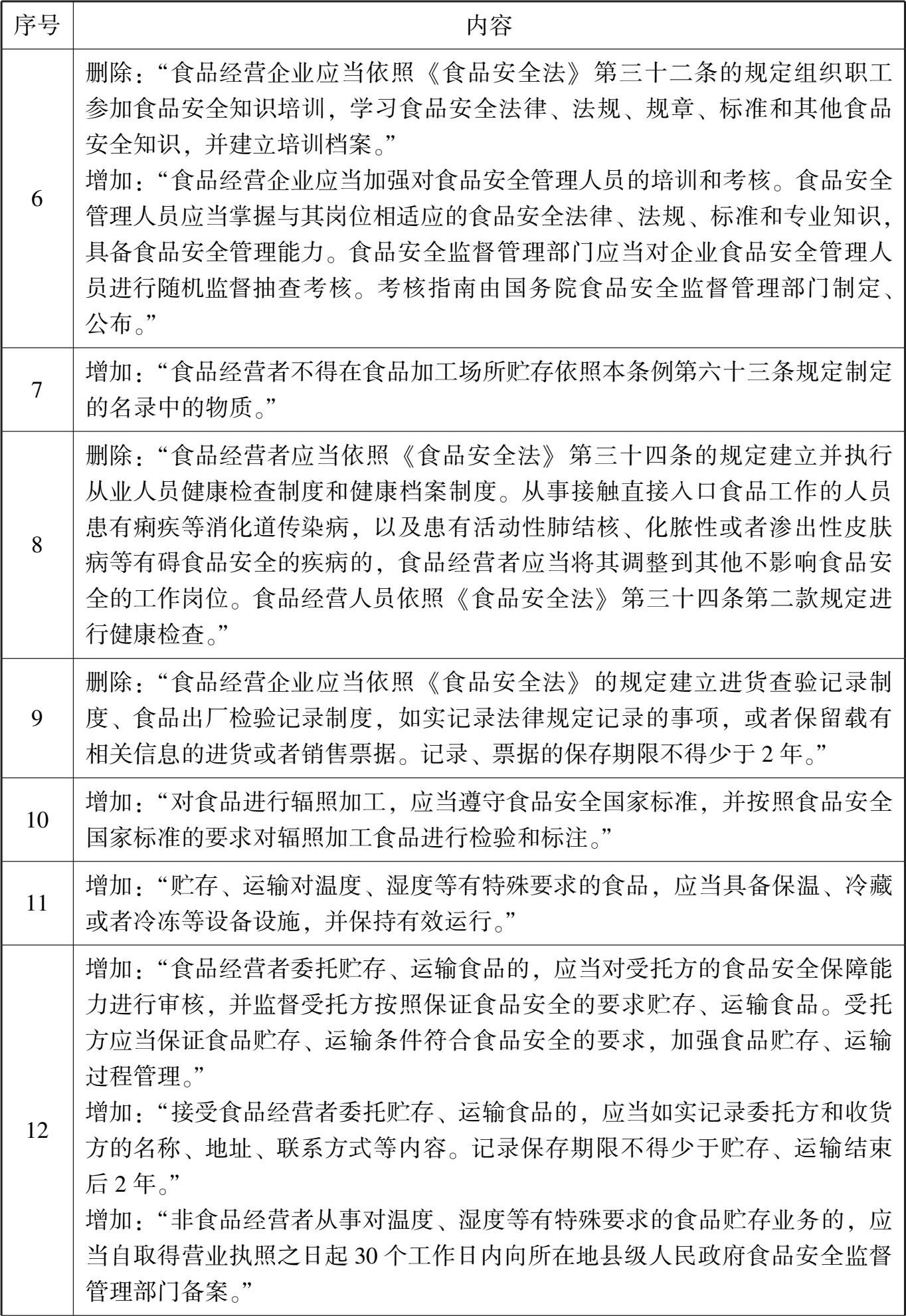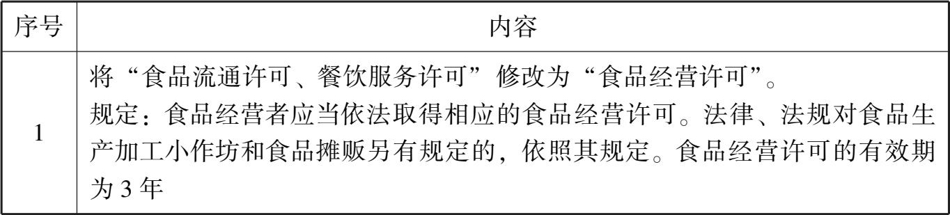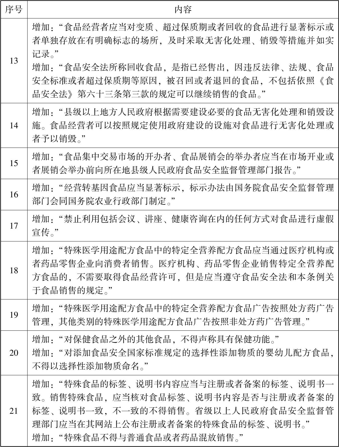 表2-20 2016年《食品安全法实施条例》对流通领域食品经营规定的修改