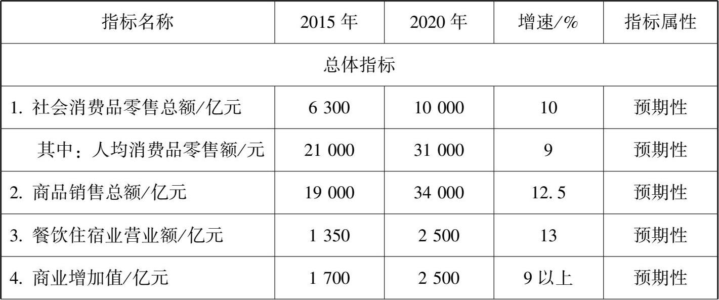 “十三五”时期重庆市现代商贸服务业主要发展目标如表 2-4 所示。