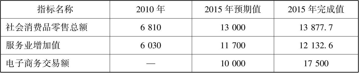“十二五”时期重庆市商贸服务业主要计划完成情况如表 2-3 所示。