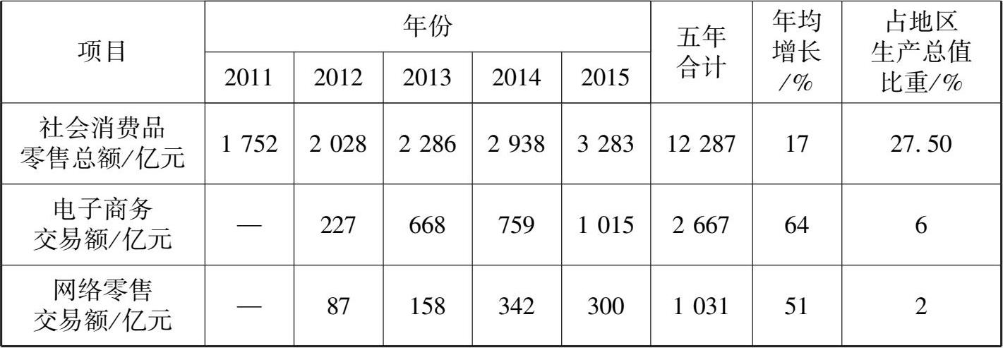 “十二五”时期贵州省内贸流通与电子商务发展情况如表 2-1 所示。