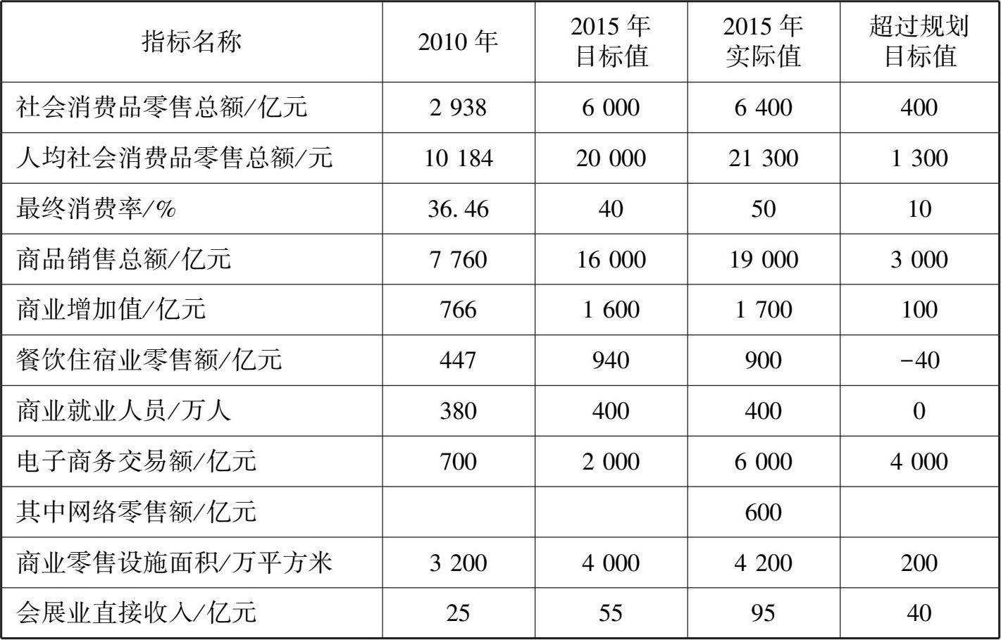 “十二五”时期四川省商贸规划主要指标完成情况如表 2-2 所示。
