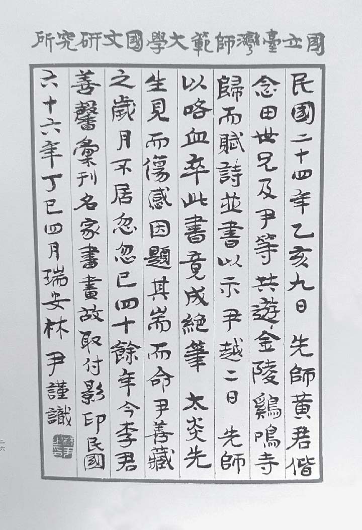 林尹先生题跋黄季刚先生绝笔