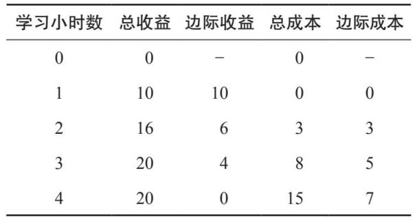8. 在经济学期末考试的前一晚,你必须决定将多少时间用于学习。对于这个问题,假设你关心的只是你最终的考试分数。该考试总分为20分。(下面表格中的“总收益”一列表示你会因为知识增加而多获得的分数。“总成本”一列则表示你会因为缺乏睡眠导致粗心错误而失去的分数。“边际”列表示你每多学1小时所产生的影响。这些边际数字是相邻两行数字的差。)